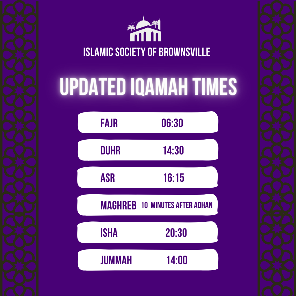 Updated prayer times Feb 1st 2024